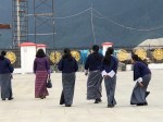 - Schoolgirls in front of the Buddha statue in Thimphu